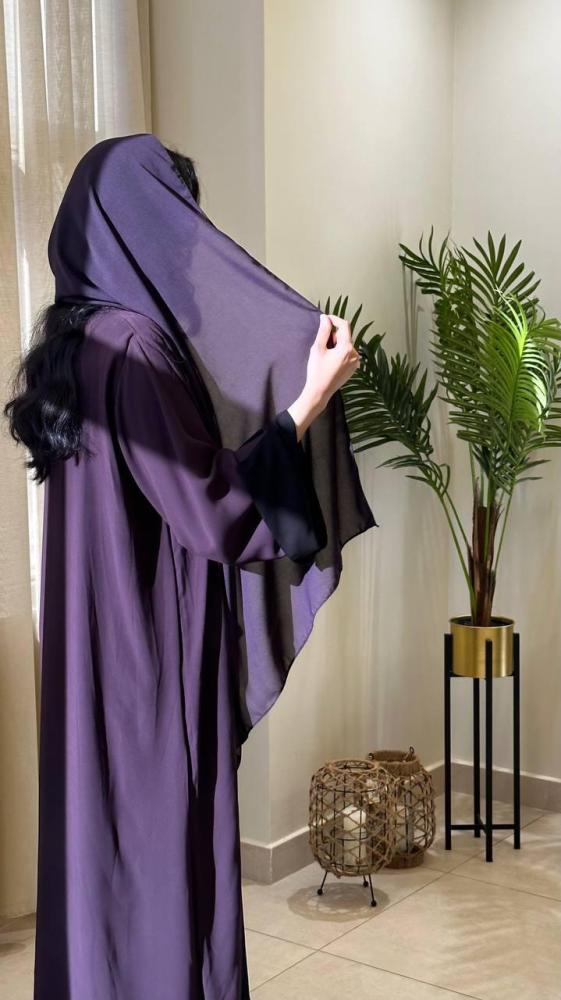 عبايه دبل فيس جهه اسود والجهه الثانيه موف