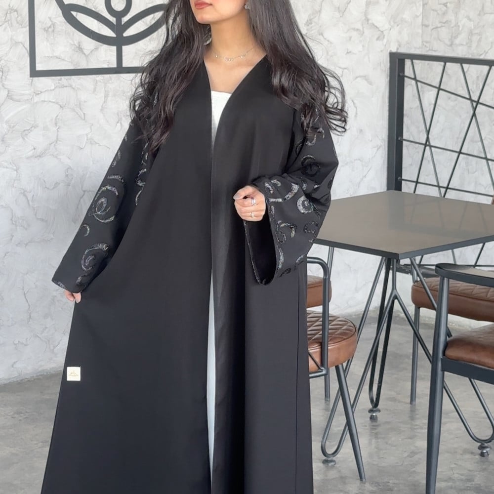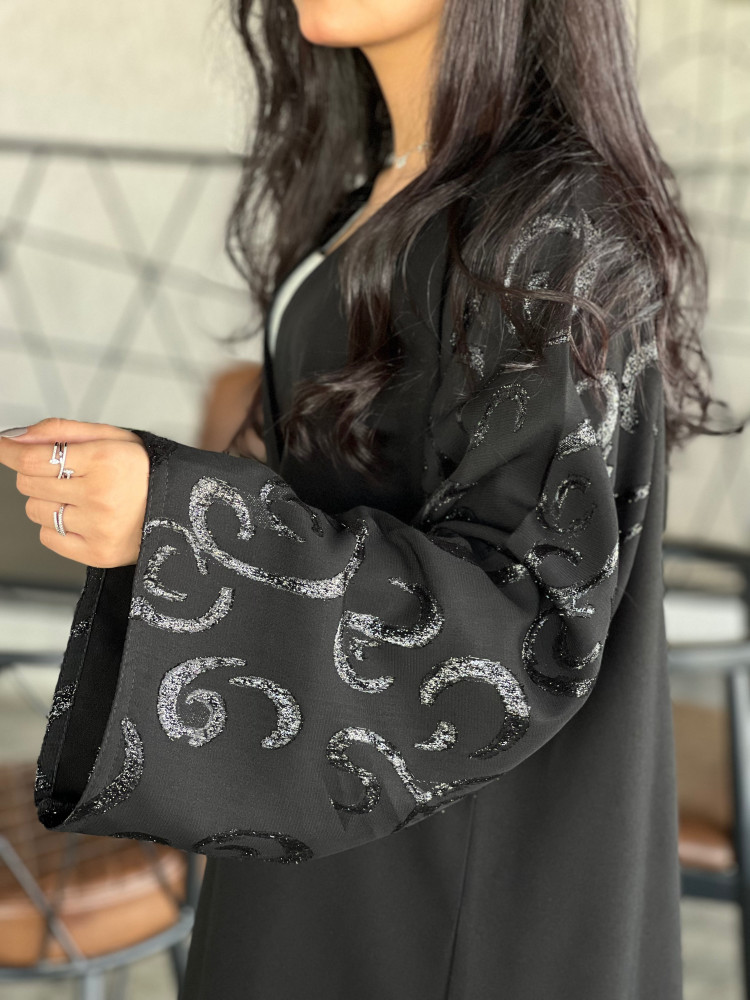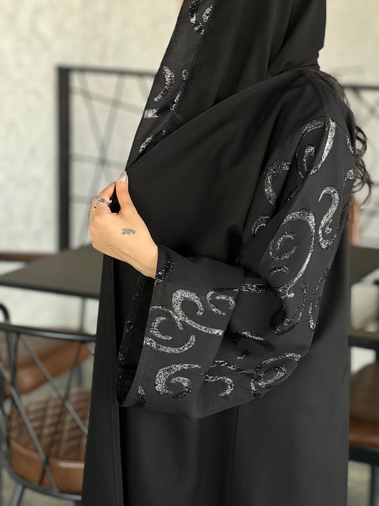 ابيها ب ازرار طرحة سوداء وطولي تقريباً 155الى156